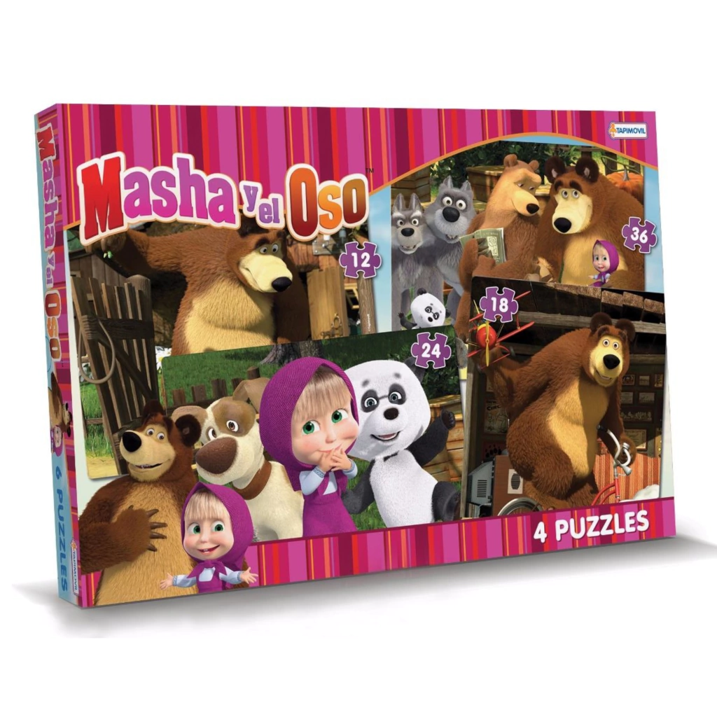 4 Rompecabezas de 12, 18, 24 y 36 piezas Masha y el oso – Tapimovil