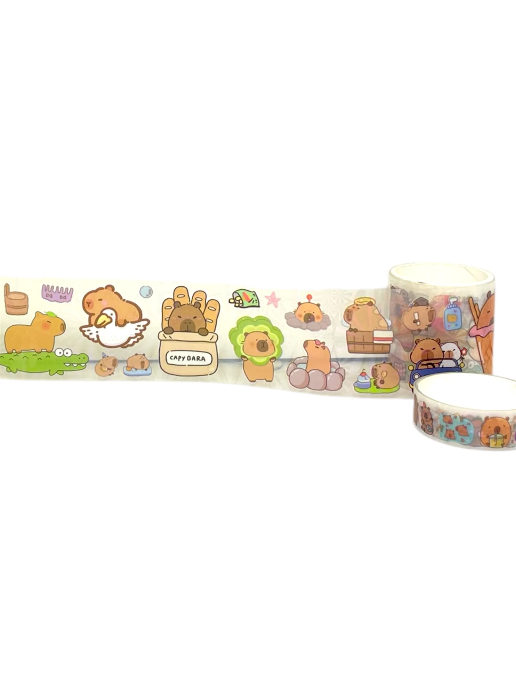 Contiene mucha alegría y buenas energías para que decores todo con esta cinta de capibara